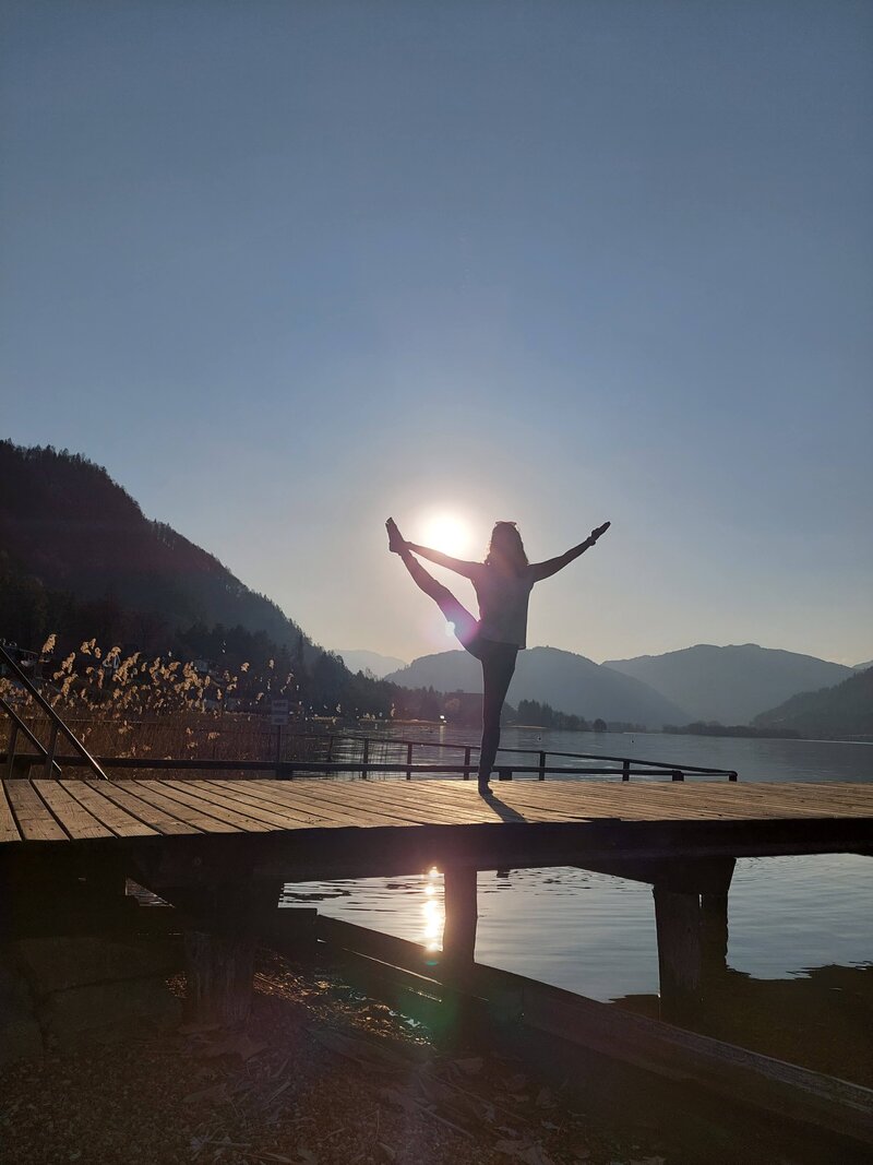 Durch den Tanz entdeckte ich die Freude an der Bewegung und die Ausdrucksstärke des Körpers. Daher ist für mich der Zugang zu körperlichem, geistigem und seelischem Einklang über die Übungen auf der Matte genau der richtige. Beim Yoga erfuhr ich, wie durch Anstrengung Loslassen, durch vermeintliches Verharren Fluss, und durch Konzentration Leichtigkeit entstehen können. Yoga verhilft mir zu mehr Balance im Alltag, zu mehr (und dadurch weniger) „ich“ zu finden, mehr im Hier und Jetzt zu sein. Yoga ist ein ständiger, treuer Begleiter geworden, der aus meinem Leben nicht mehr wegzudenken ist.